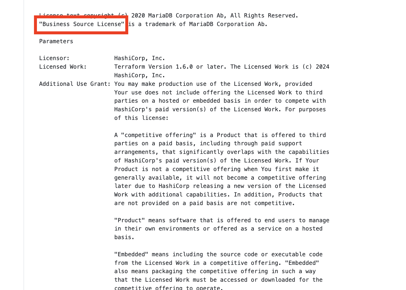 HashiCorp가 Terraform 라이선스를 Mozilla Public License (MPL)에서 비오픈 소스 라이선스인 Business Source License (BUSL)로 변경하였습니다.