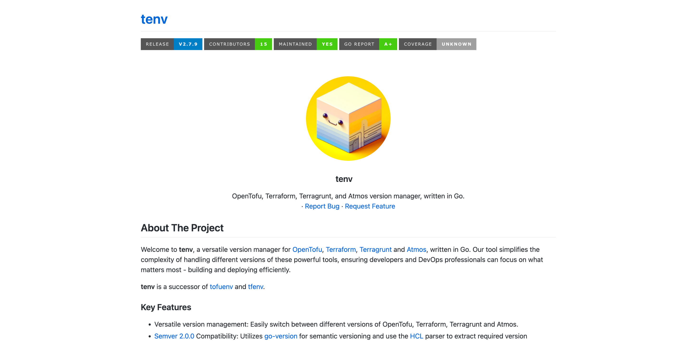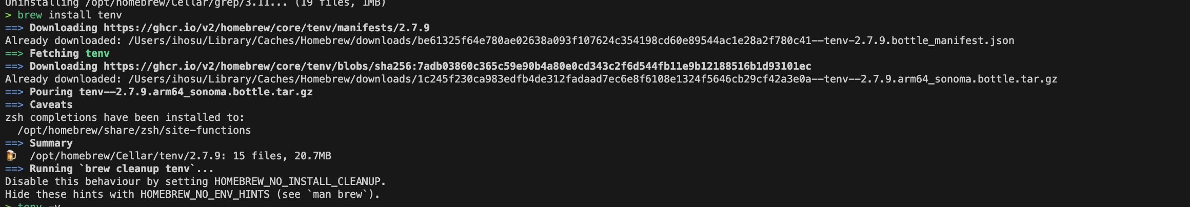 공식홈페이지를 참고하여 OpenTofu, Terraform, Terragrunt 및 Atmos의 버전관리를 해주는 tenv를 먼저 설치합니다.