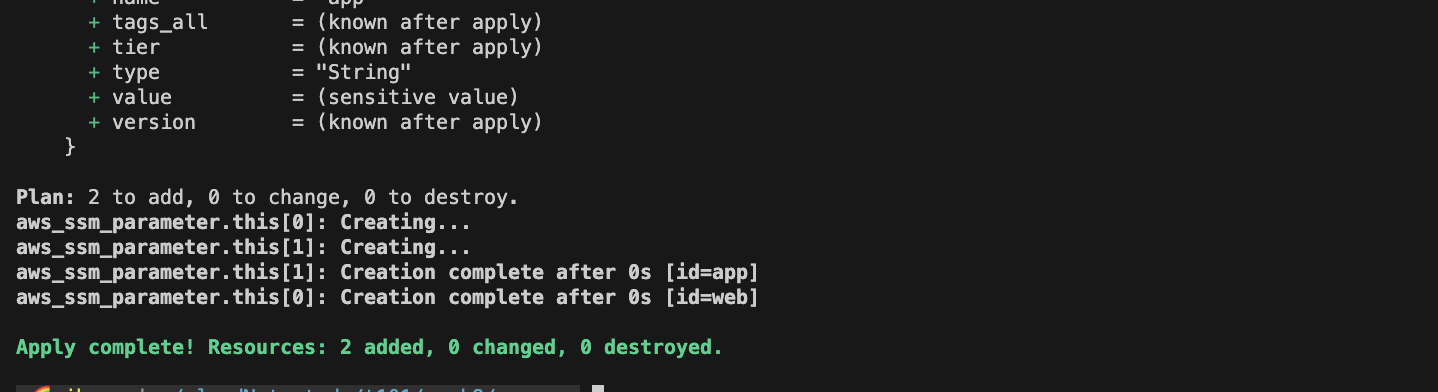 aws_ssm_parameter resource가 tfstate 파일에 생성된 것을 확인하실 수 있습니다.