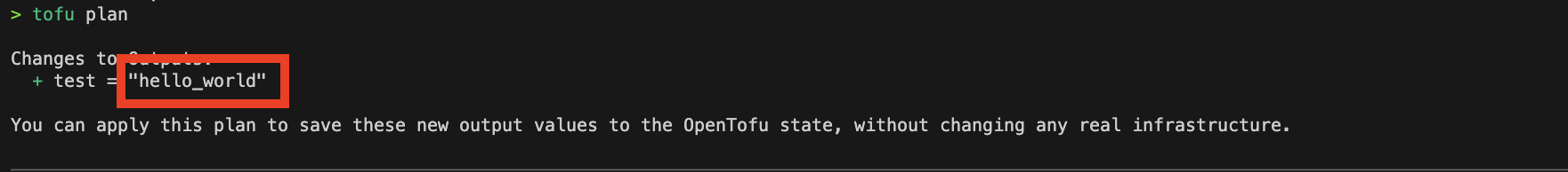 OpenTofu는 기존 인프라와 구성에 따라 생성, 업데이트 또는 파괴할 인프라를 설명하는 실행 계획을 만듭니다.