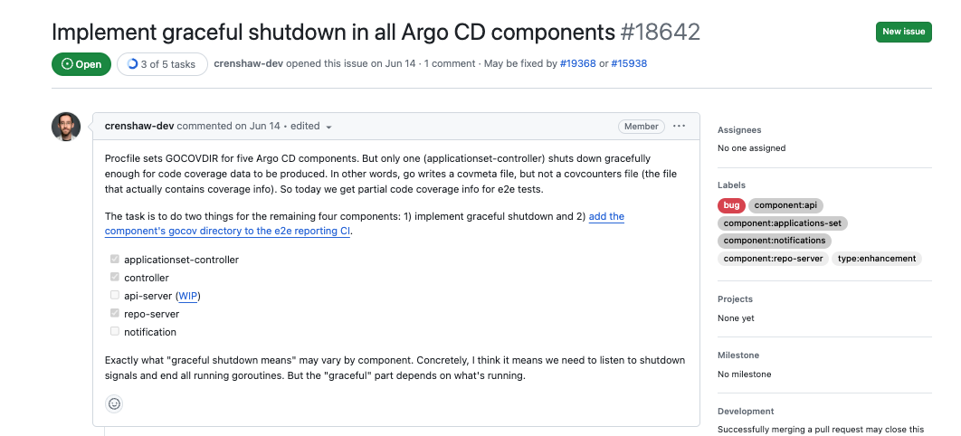 이 중 제가 살펴본 이슈는 ArgoCD의 maintainer인 crenshaw_dev가 직접 올린 이슈였는데요.