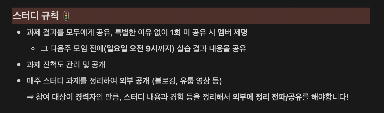 본격적으로 스터디를 시작하는데, 부디 지치지 않고! 과제를 잘 해내서 끝까지 스터디를 완수하겠습니다!!!