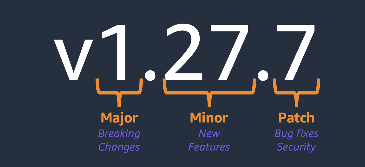 보통 5~6개의 마이너 버전 지원(현재 1.25~1.29)되며 평균 3개월마다 새 버전 제공됩니다. 또한, 업스트림 쿠버네티스가 EKS에서 사용 가능한 버전을 더 이상 지원하지 않는 경우에도 EKS에서의 쿠버네티스 버전은 Amazon EKS에서 사용 가능한 이후 14개월 동안 완전히 지원됩니다.