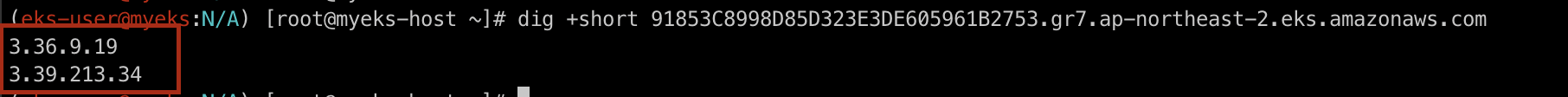 dig 명령어를 통해 해당 endpoint로 조회를 하면 2개의 public endpoint가 나오는 것을 확인하실 수 있습니다.