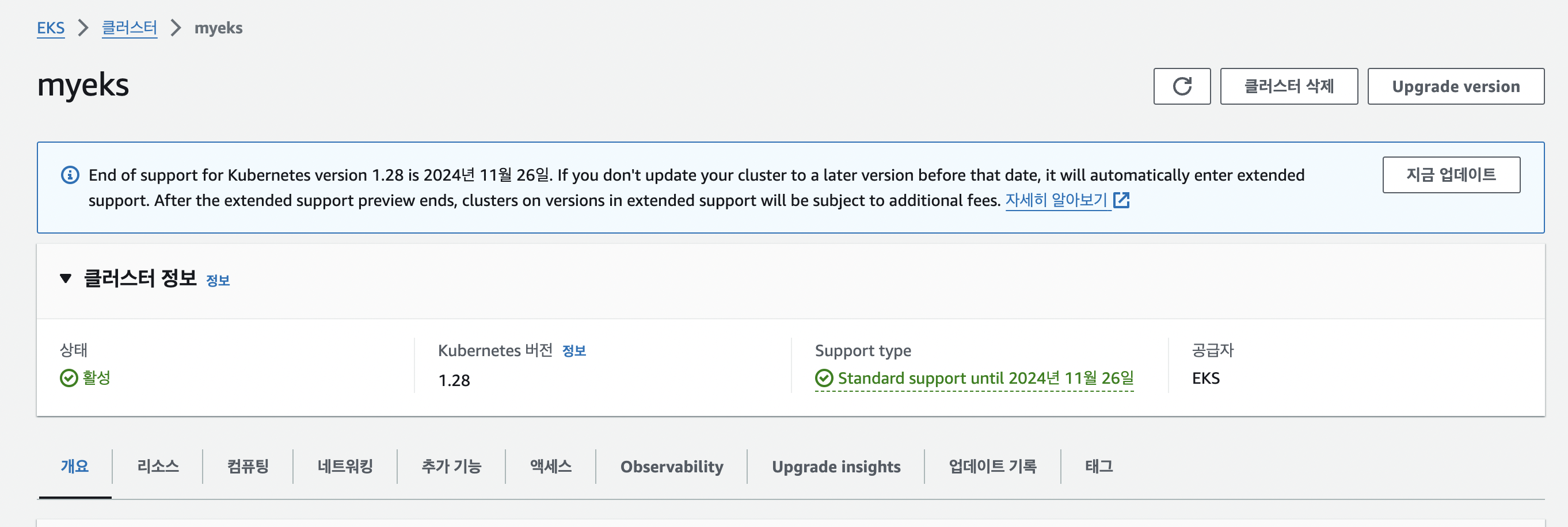 명령어를 살펴보자면 cluster의 버전은 1.28이며