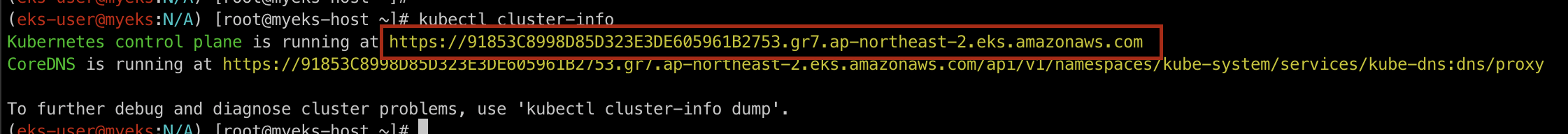 해당 명령어로 Cluster의 정보를 조회했을 때 나오는 endpoint가 곧, API server endpoint임을 확인하실 수 있습니다.