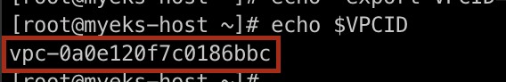 export VPCID=$(aws ec2 describe-vpcs --filters "Name=tag:Name,Values=$CLUSTER_NAME-VPC" | jq -r .Vpcs[].VpcId)