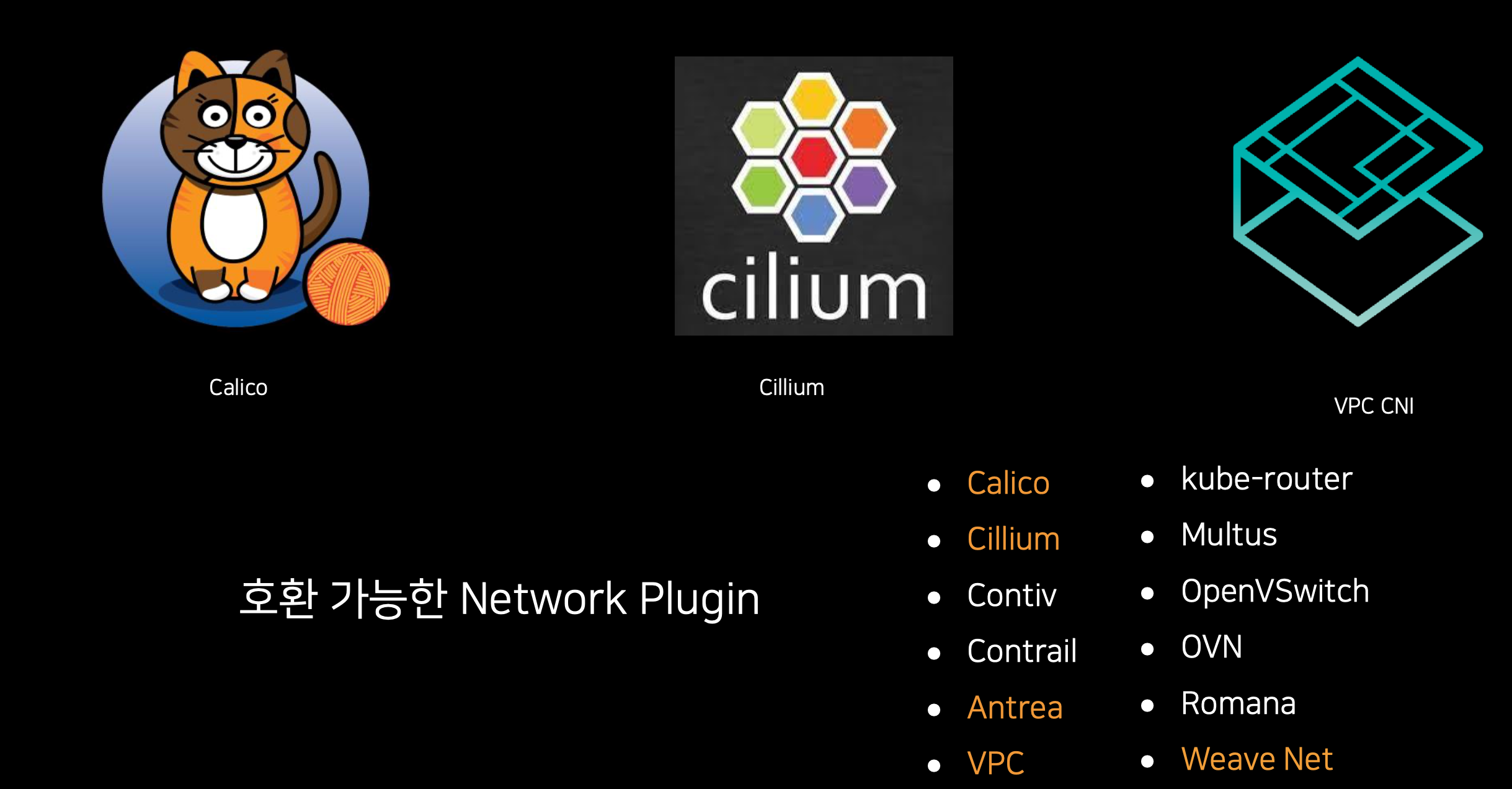 K8s CNI 종류에는 Calico, Flannel, Weave Net, Cilium, Amazon VPC CNI for Kubernetes, Azure CNI등이 있습니다.