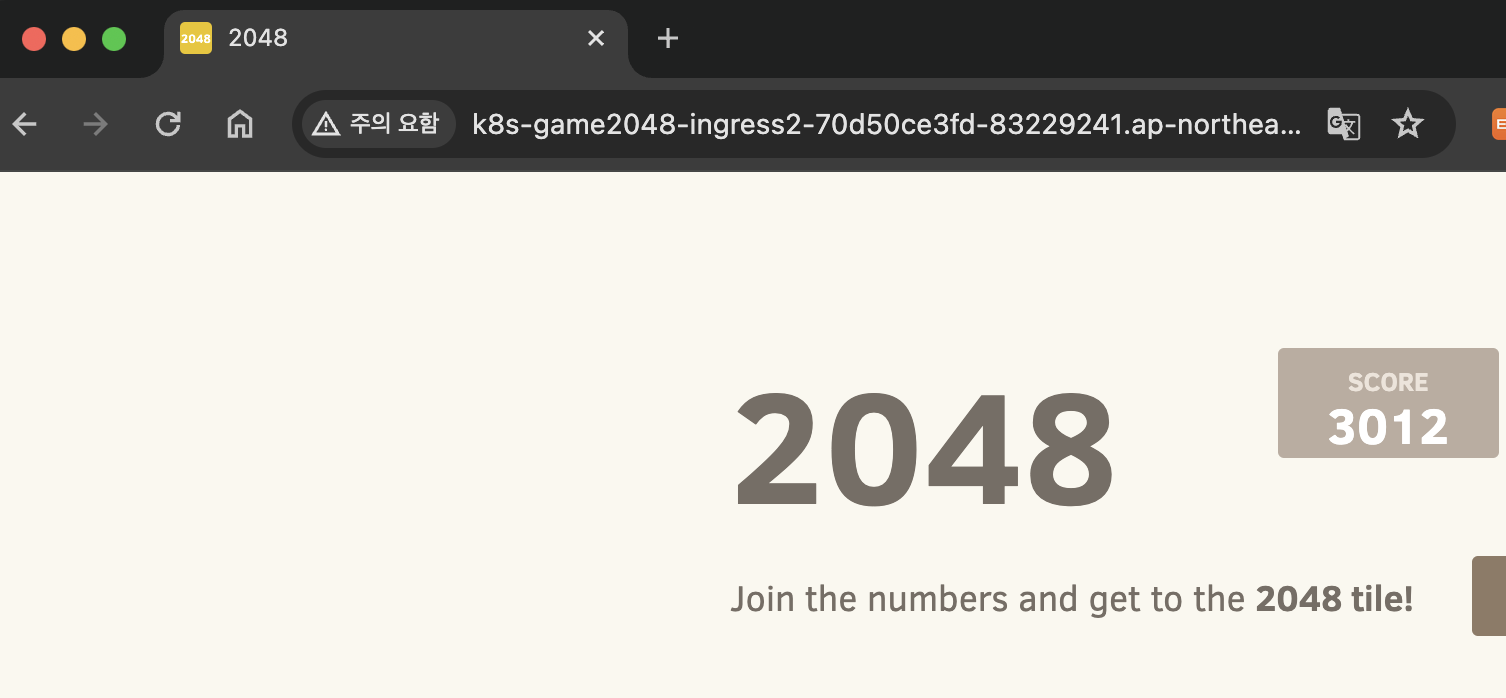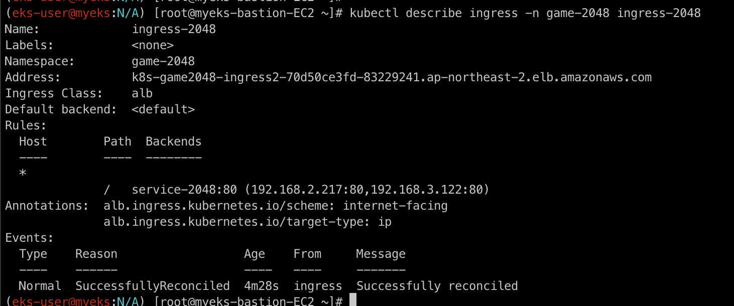 kubectl get ingress -n game-2048 ingress-2048 -o jsonpath={.status.loadBalancer.ingress[0].hostname} | awk '{ print "Game URL = http://"$1 }'