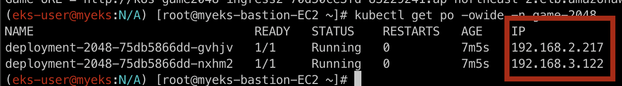 AWS VPC CNI로 인해 pod의 IP로 바로 접근하고 있는 것을 확인하실 수 있습니다!