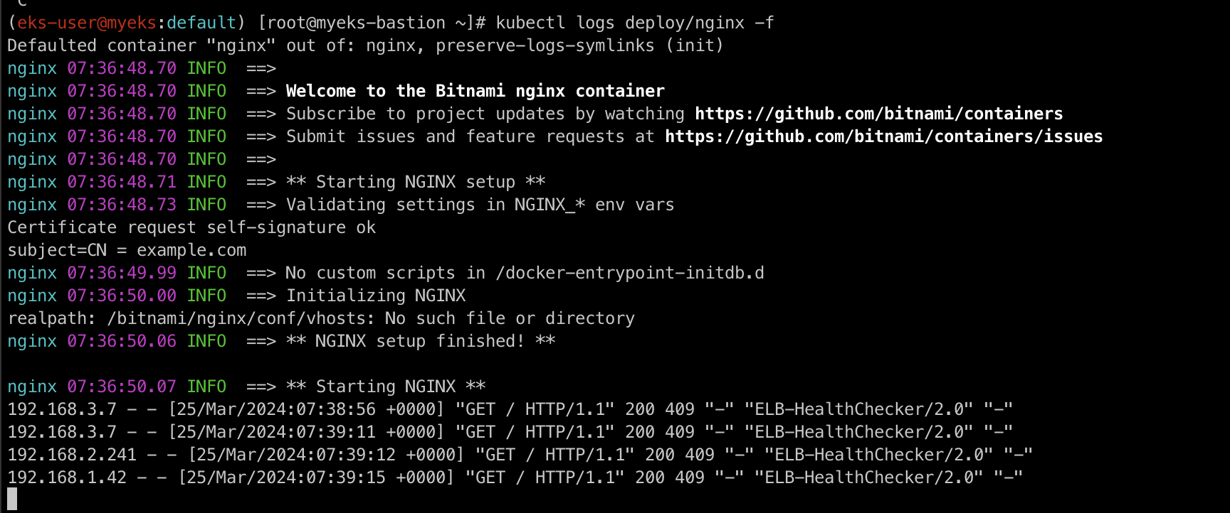 실습을 통해 NGINX Pod를 배포해보고 직접 Log들을 확인해보겠습니다.
