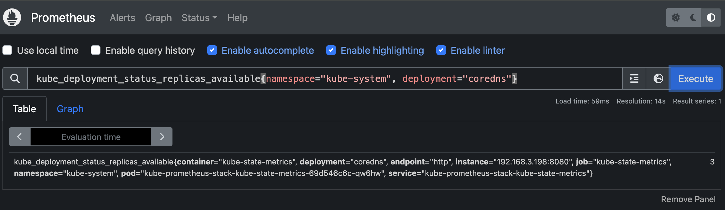 그러고 다시 kube_deployment_status_replicas_available{deployment="coredns"} 쿼리를 입력하니 3개로 보여지는 것을 확인하실 수 있습니다!