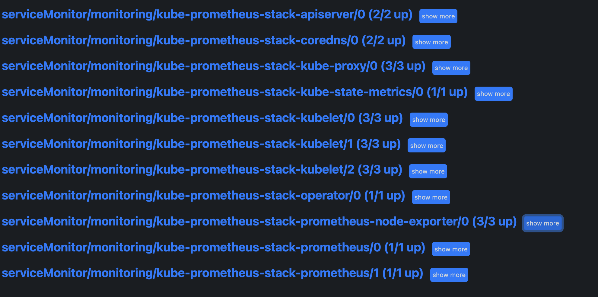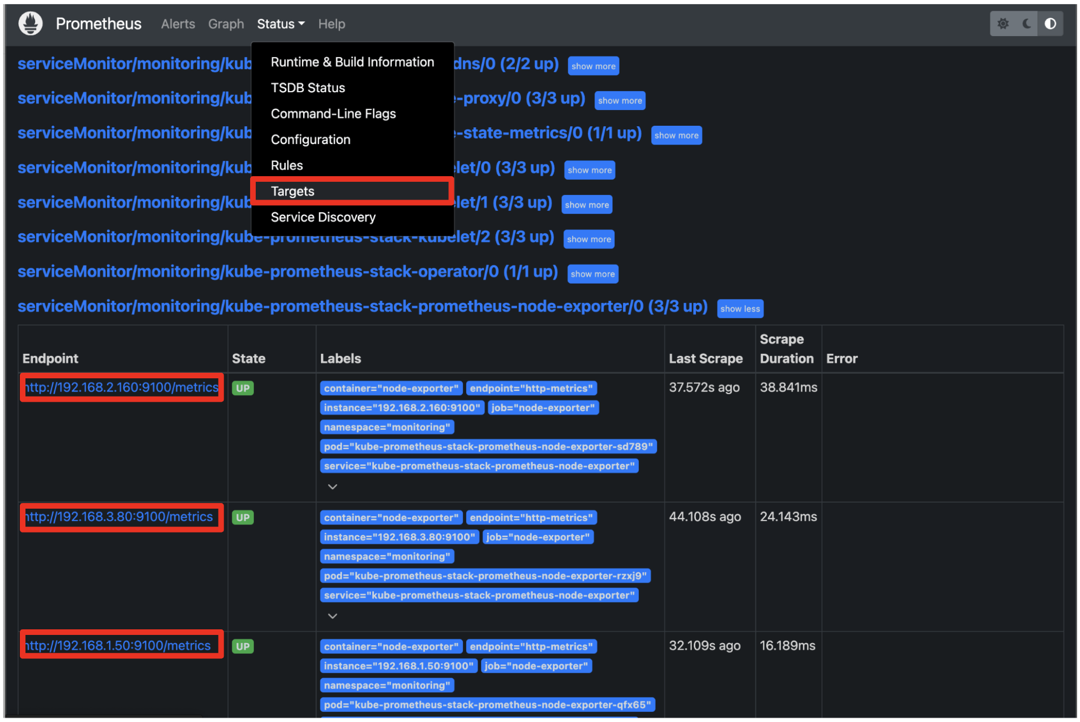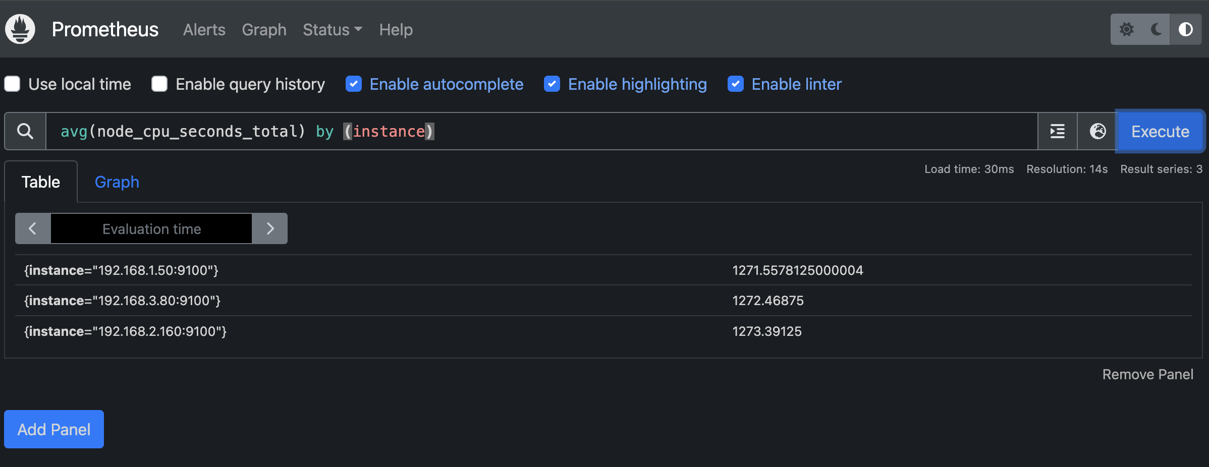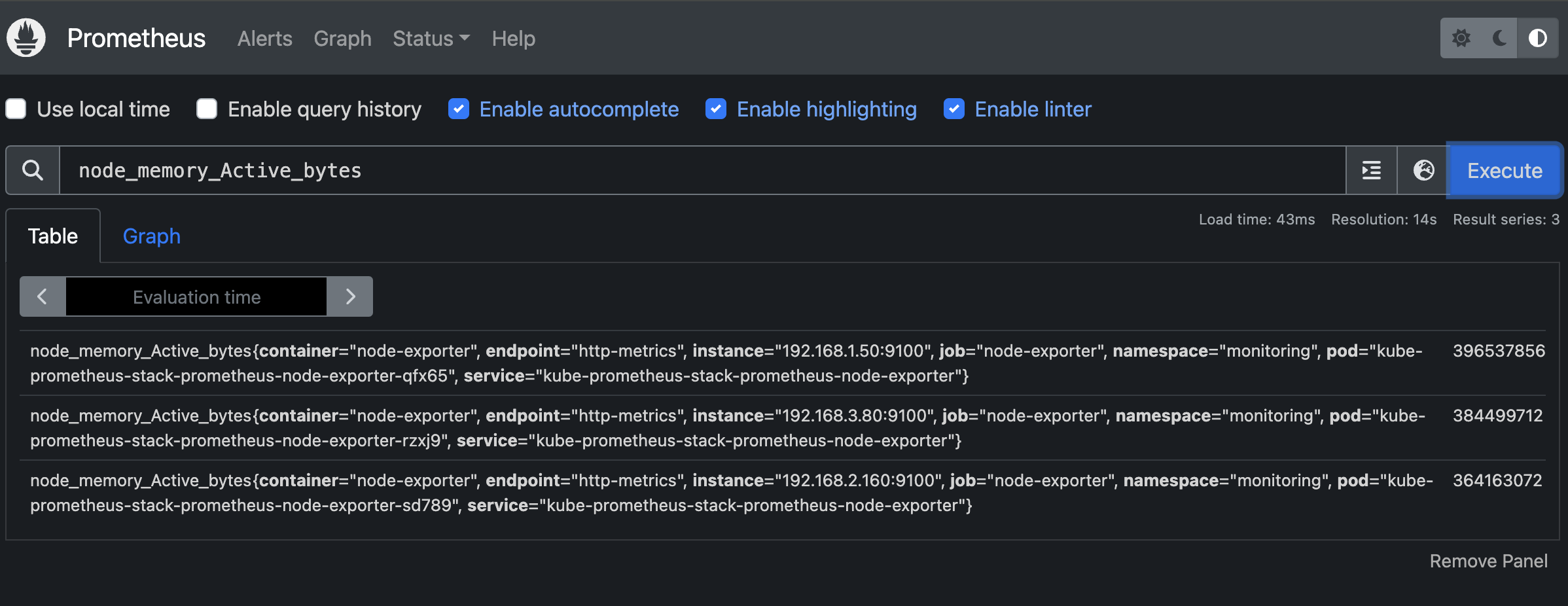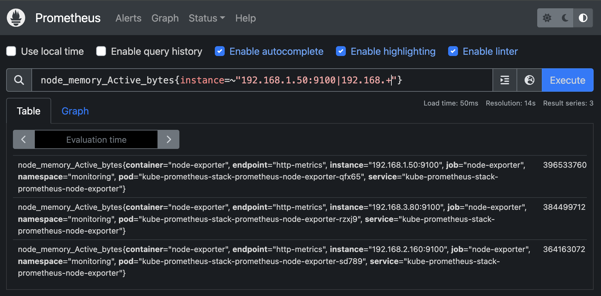 출력되는 metric 정보는 node-exporter 를 통해서 총 3개의 노드에서 수집된 정보입니다.