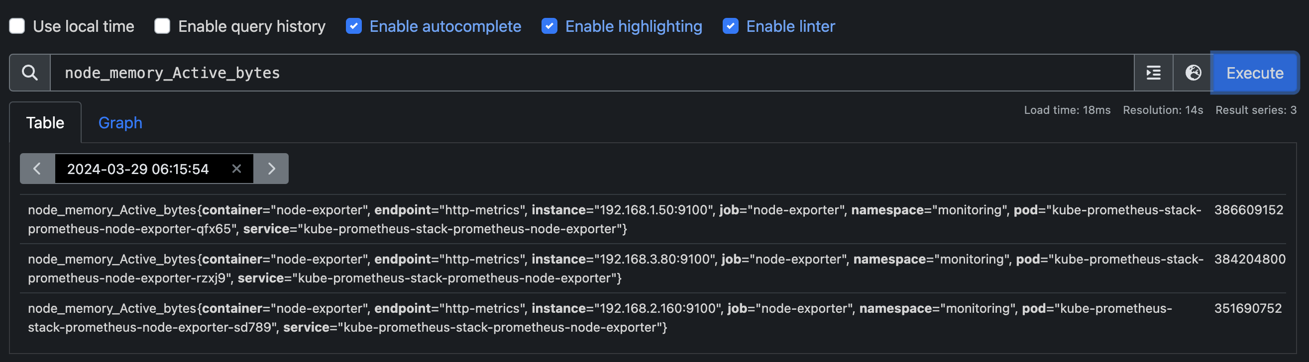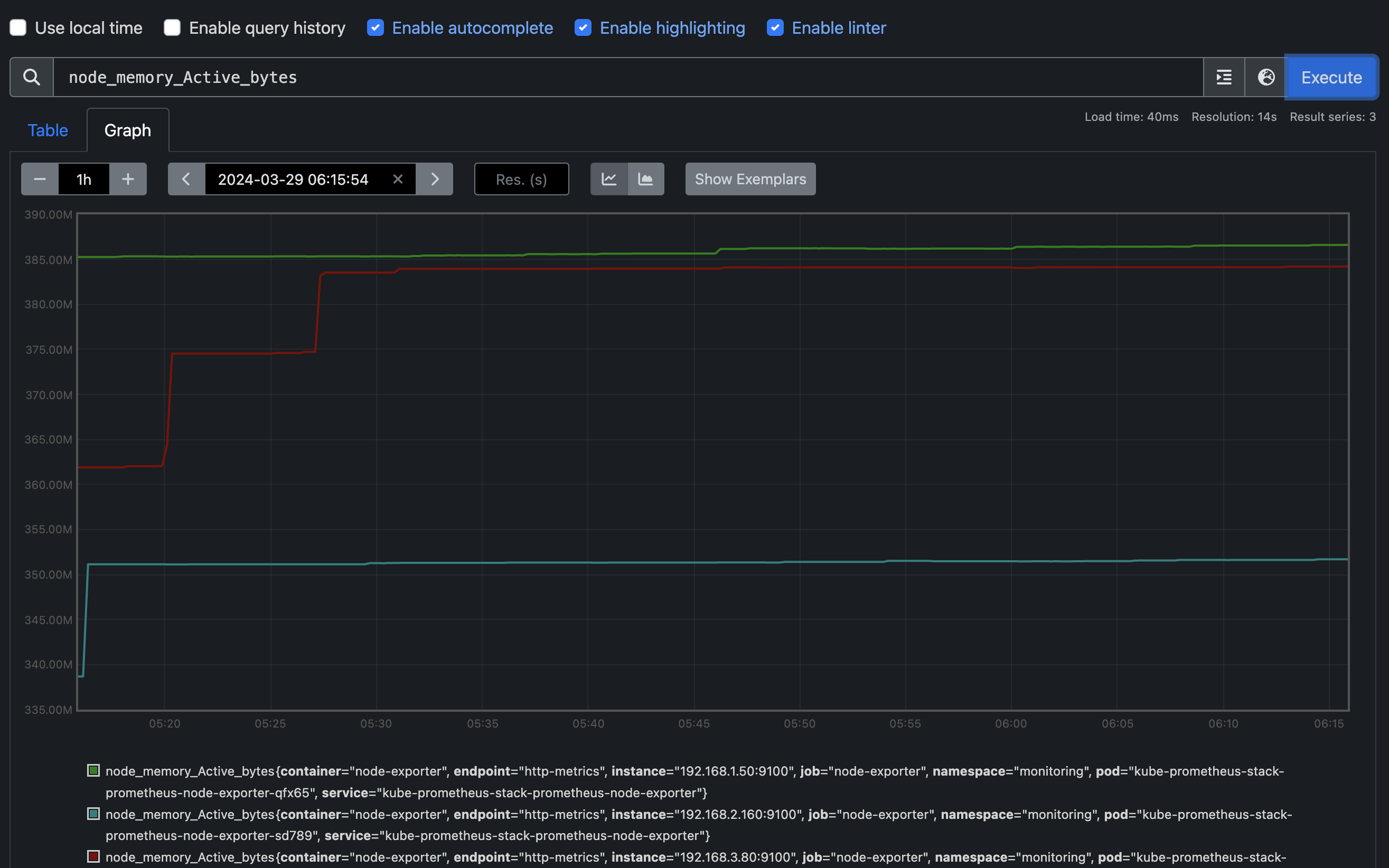 그 중 node_memory_Active_bytes를 한번 확인해보겠습니다.