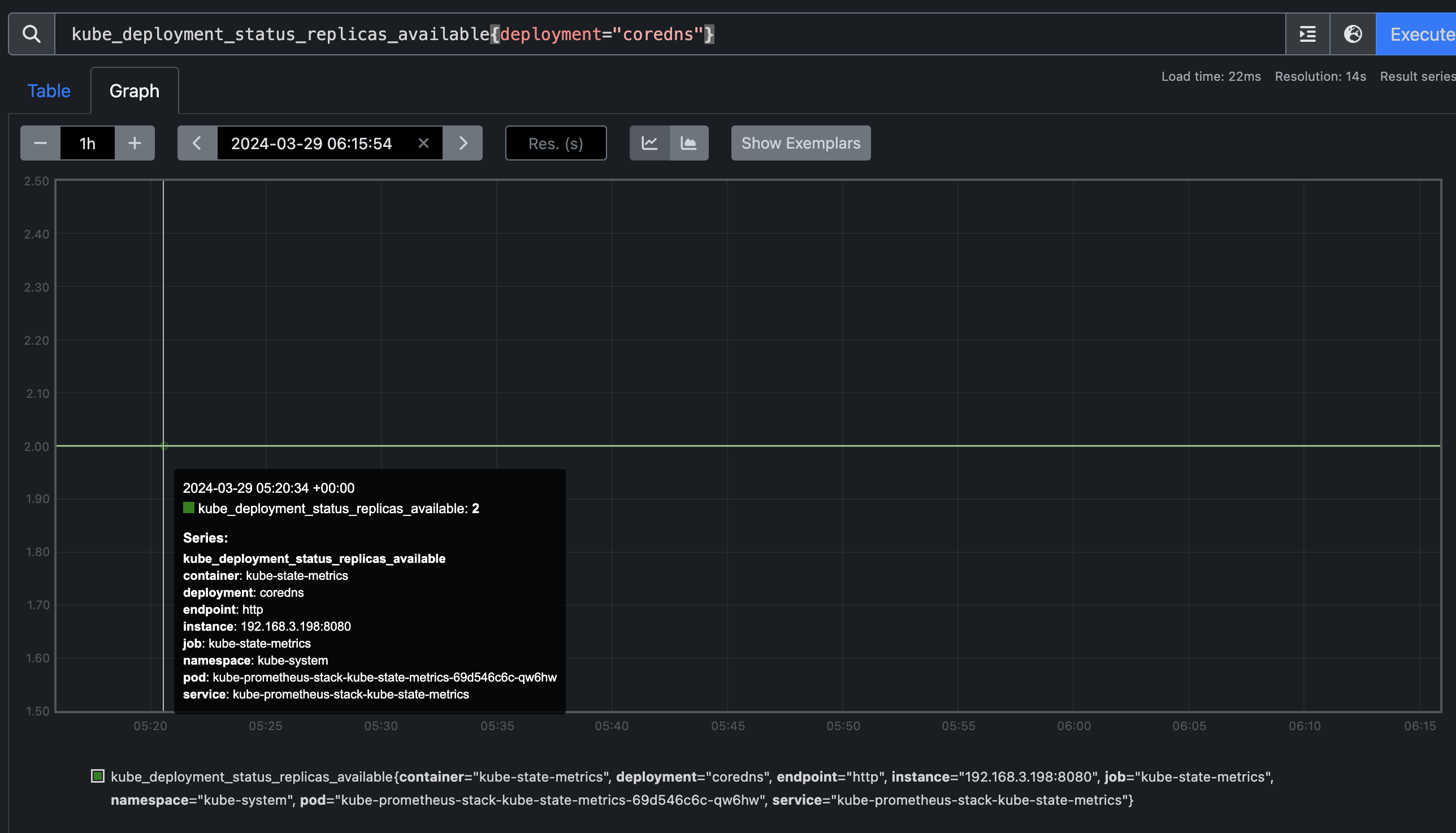 kube_deployment_status_replicas_available{namespace="kube-system", deployment="coredns"}