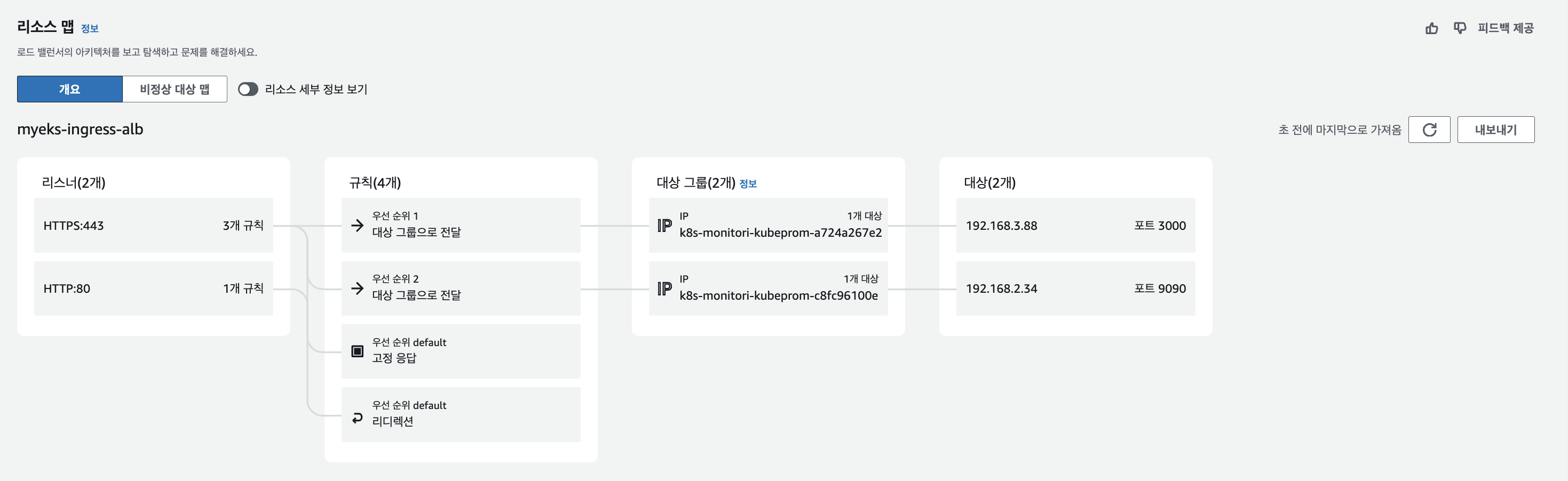 - 파드, 디플로이먼트, 노드 등의 상태 정보를 모니터링할 수 있습니다.