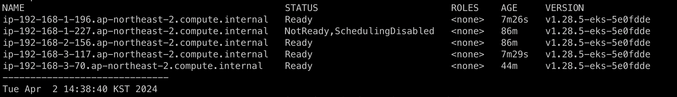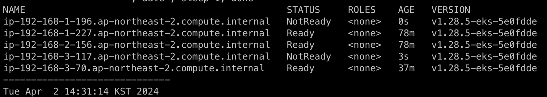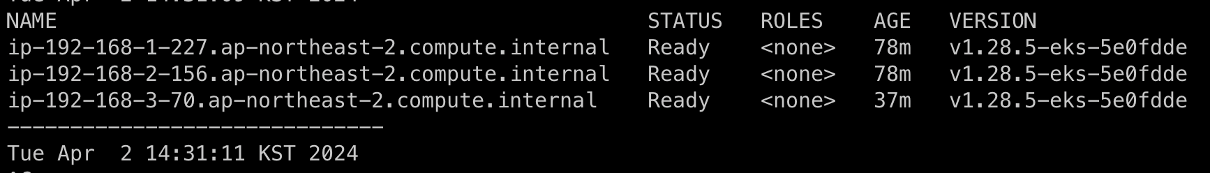 위의 명령어로 Node의 수를 5개로 늘리도록 하겠습니다.