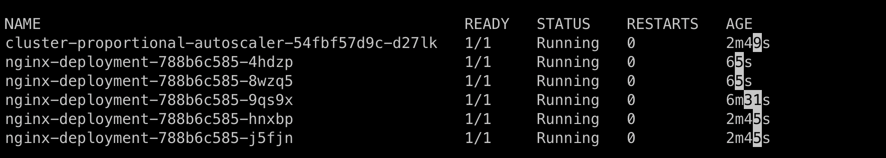 그러면 위에서 설정한 CPA 정책에 맞게 Node의 수가 5개이기에 Pod가 5개 띄어진 것을 확인하실 수 있습니다.