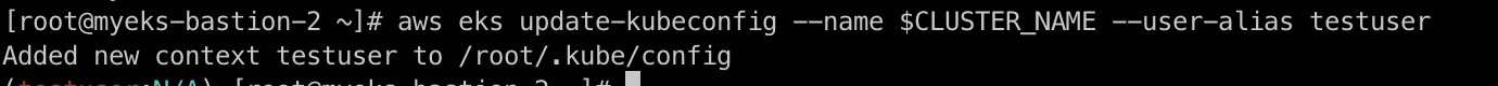 aws eks update-kubeconfig --name $CLUSTER_NAME --user-alias testuser
