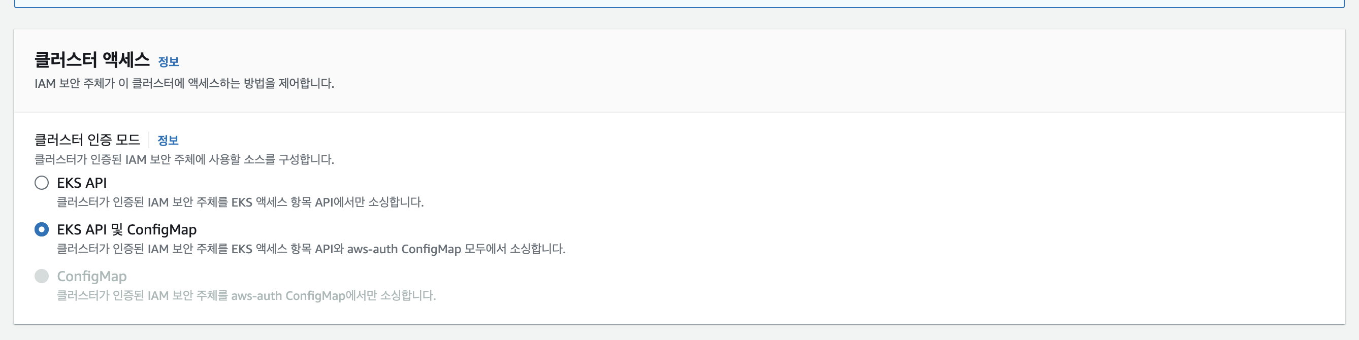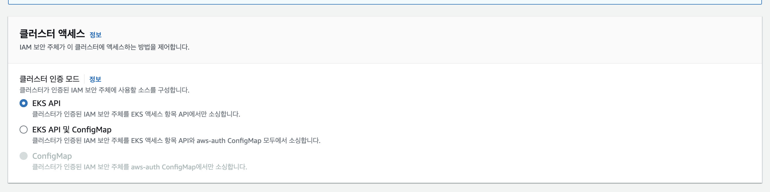 AWS에서는 이를 방지하기 위해 EKS의 API로만 관리할 수 있게끔 기능을 지원하기 시작했습니다.