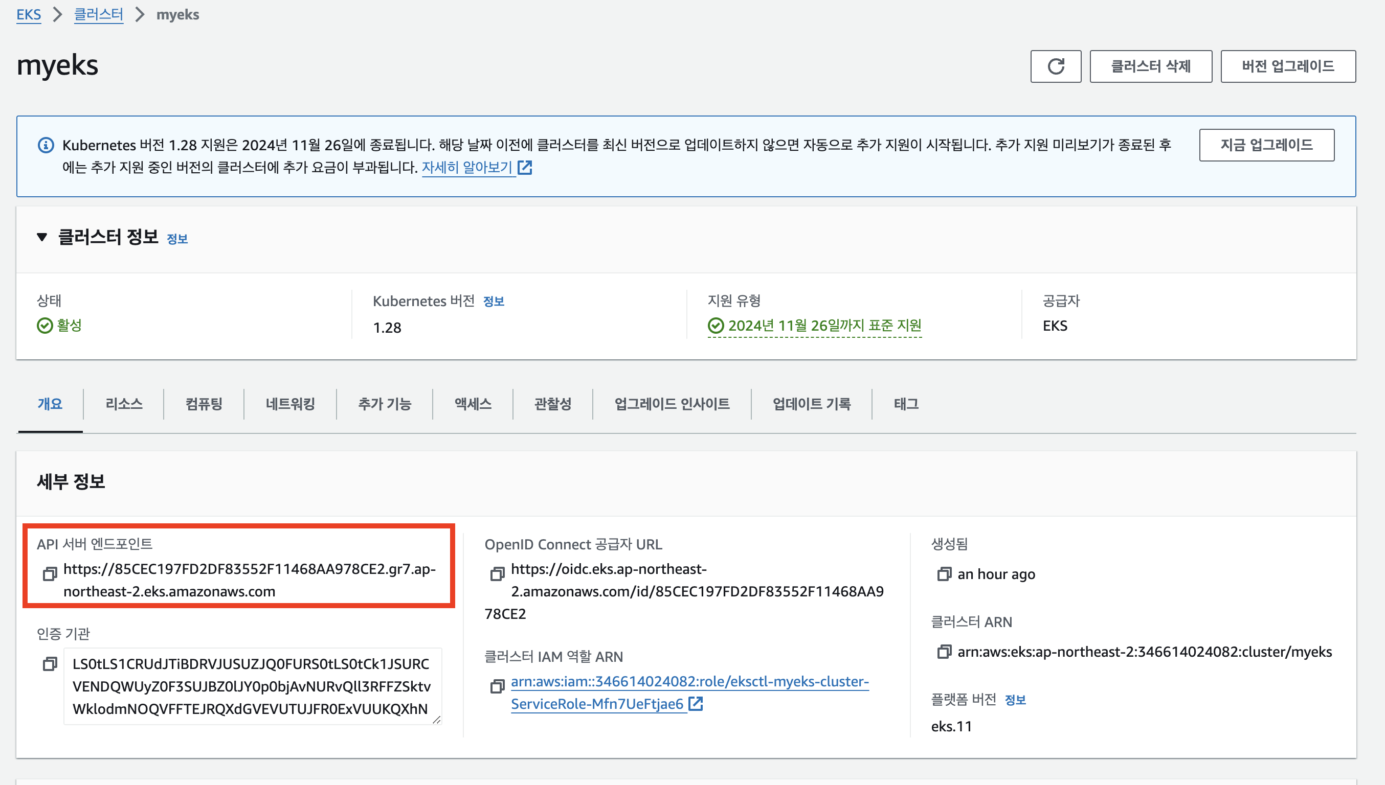 만약 public EKS가 아니라면 해당 private 주소로 바뀌게 됩니다! 이점 유의하세요!