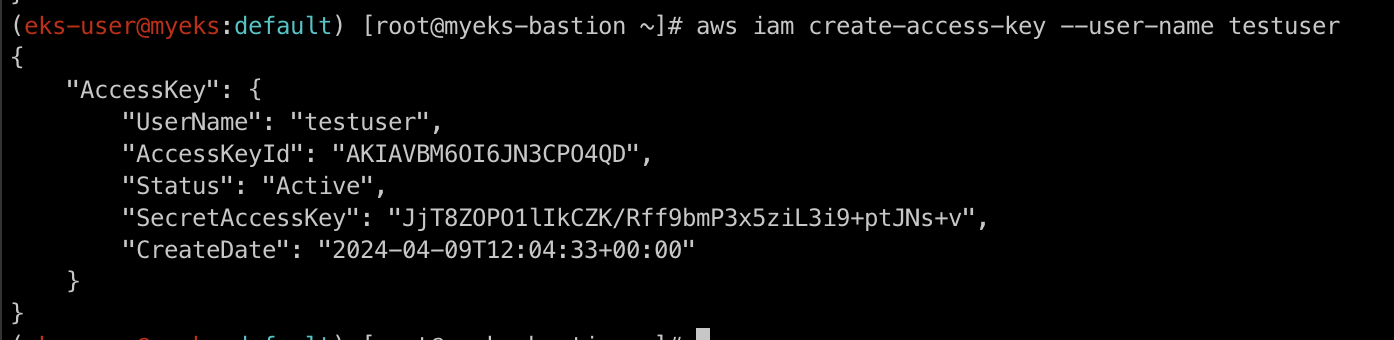 그 후 access-key를 생성하기 위해 위의 명령어 실행합니다.