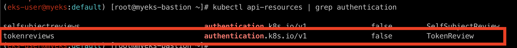 kubernetes의 api resource에서 authenticatoin을 필터 후 조회하면 아래와 같이 TokenReviewer가 존재하는 것을 확인하실 수 있습니다.