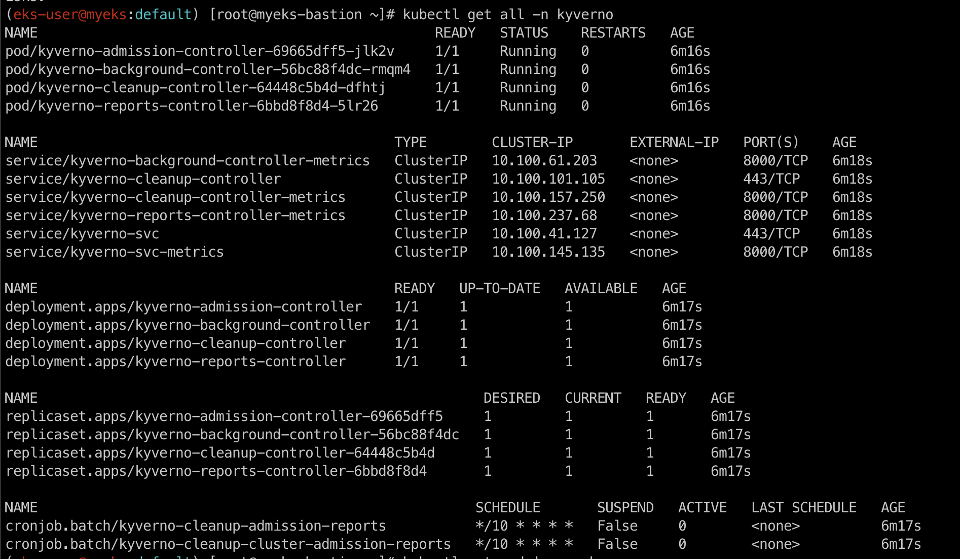 kyveno namespace에 설치된 모든 리소스를 확인해보겠습니다.