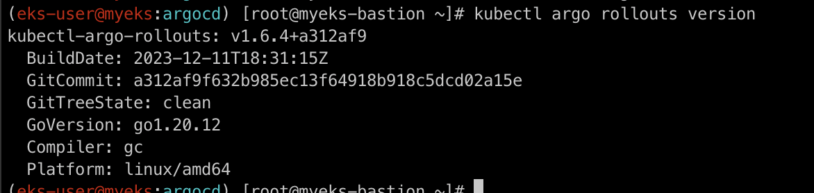 kubectl argo rollouts 명령어를 통해 version을 확인합니다.