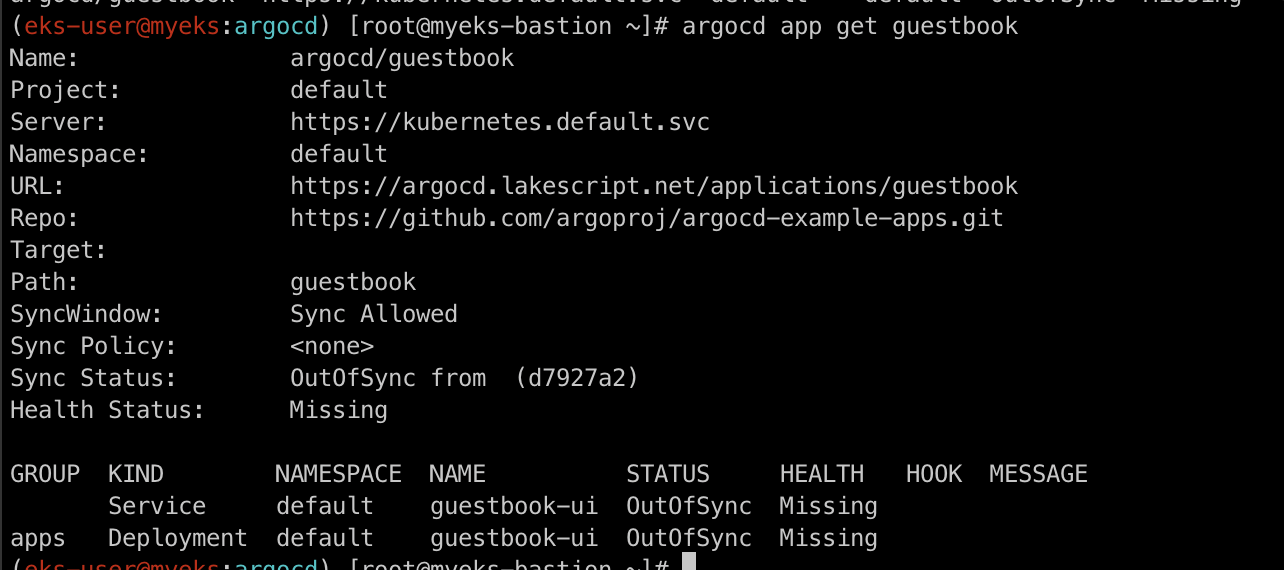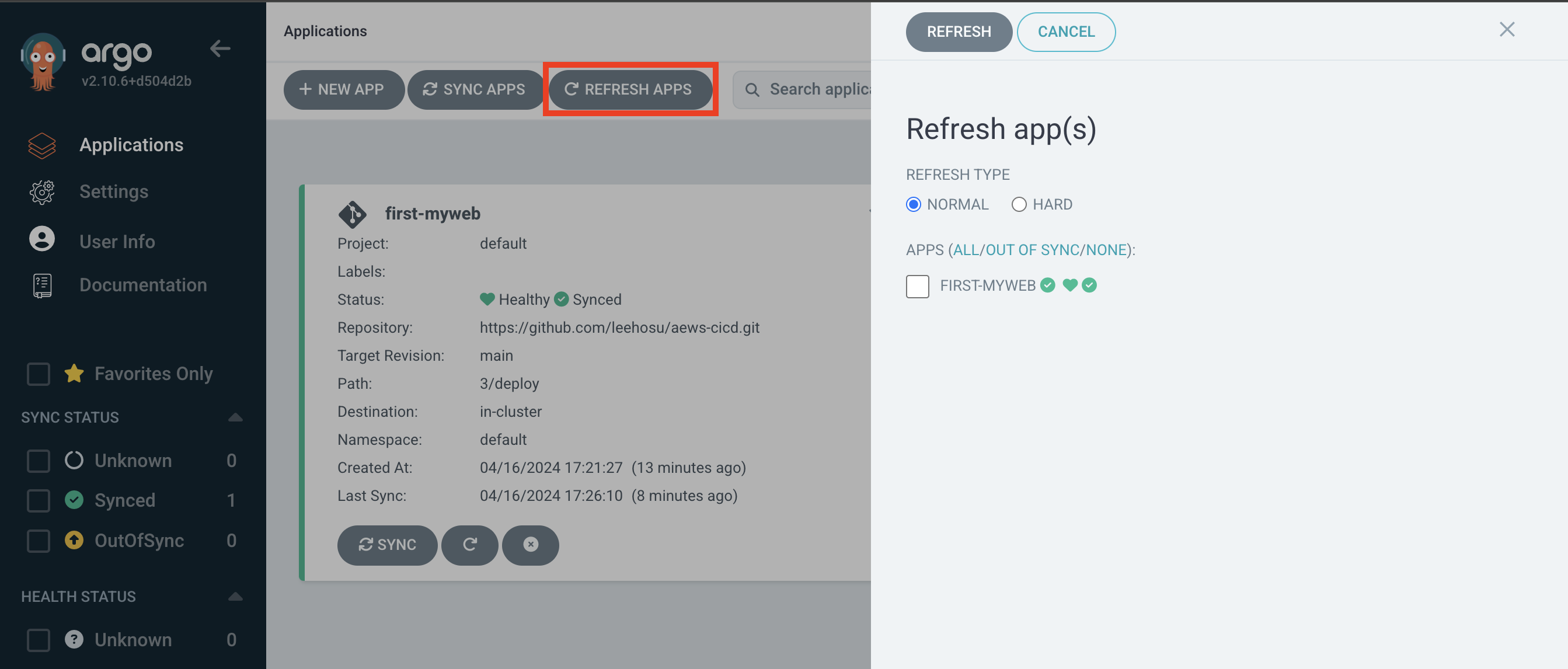 sync 명령어를 통해 Application을 배포해보겠습니다.