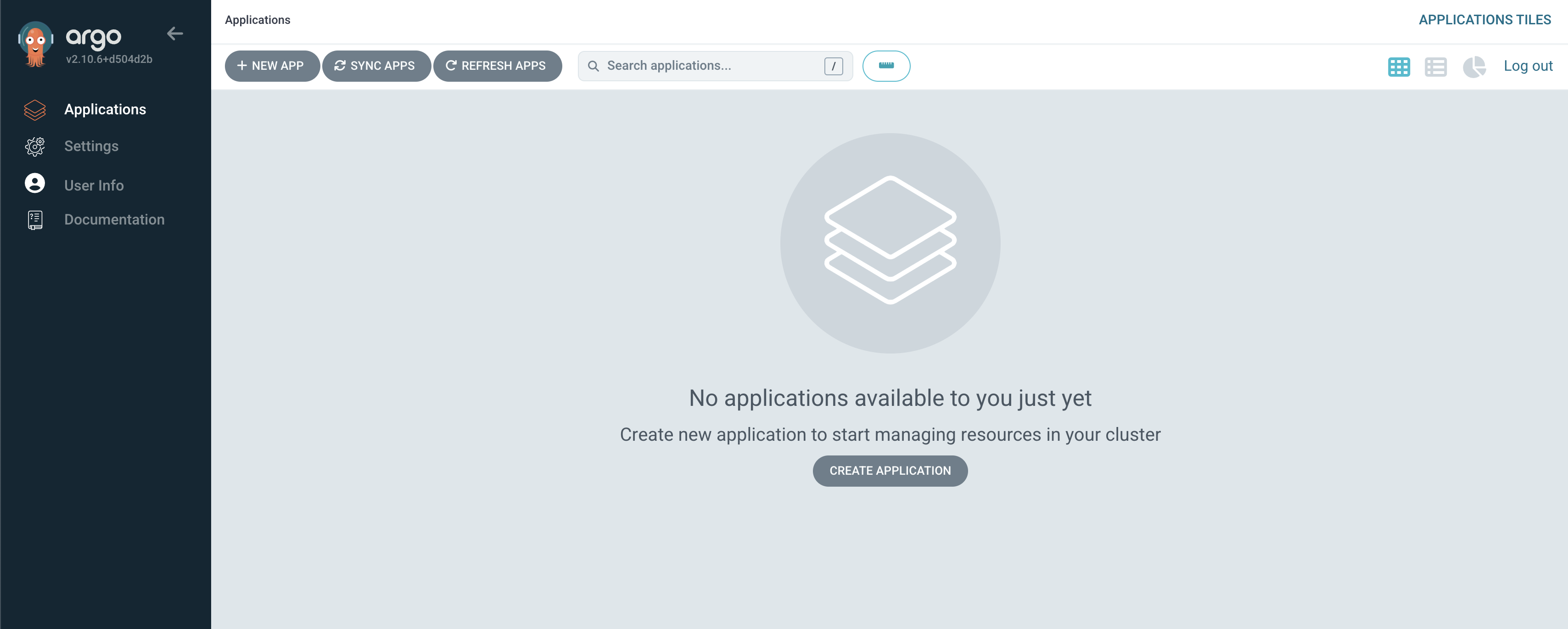 마찬가지로 ArgoCD Web에 접속하면 해당 Application이 삭제된 것을 확인하실 수 있습니다.