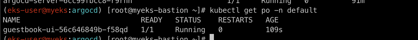 guestbook-ui Pod가 정상적으로 배포된 것을 확인하실 수 있습니다.