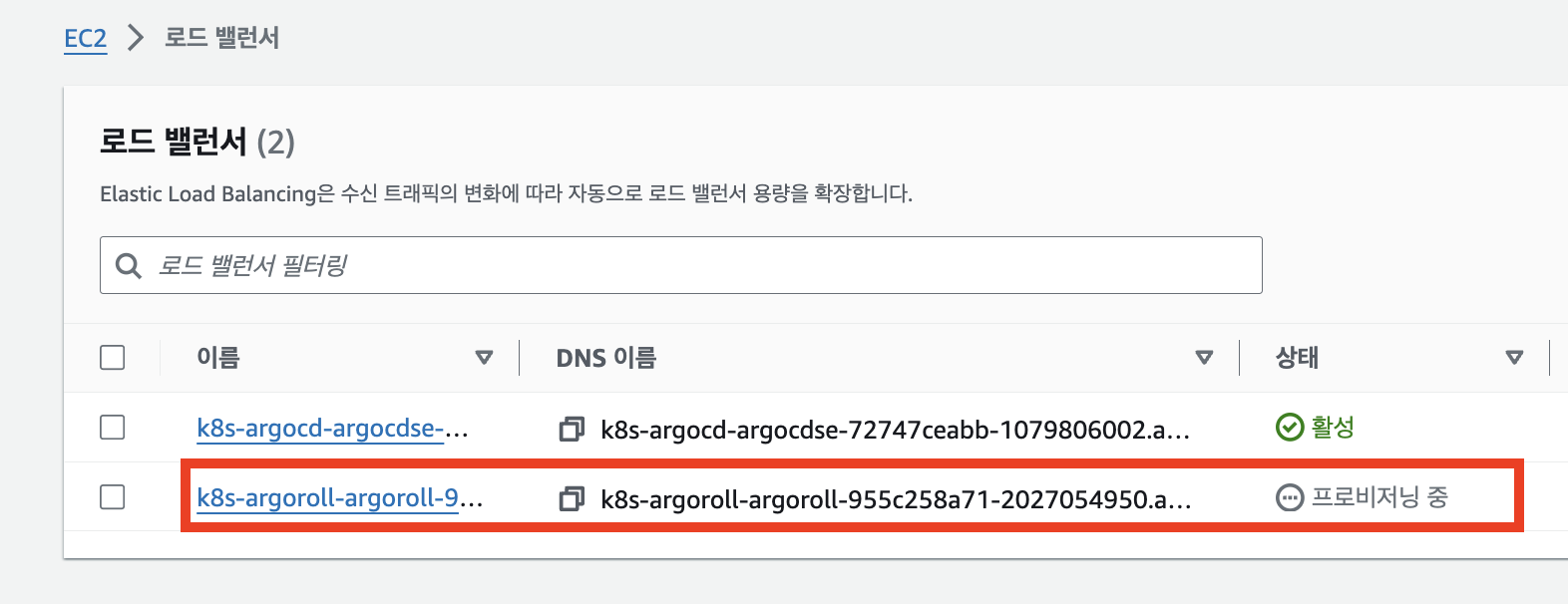AWS Managed Console에 접근하셔서 LB를 확인해보시면 위의 사진과 같이 ALB가 생성중임을 확인하실 수 있습니다.