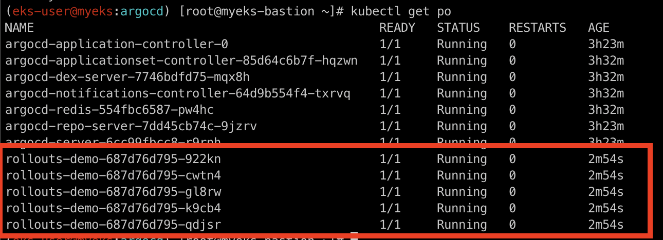 rollouts-demo Pod가 5개로 잘 배포되어있는 것을 확인하실 수 있습니다.