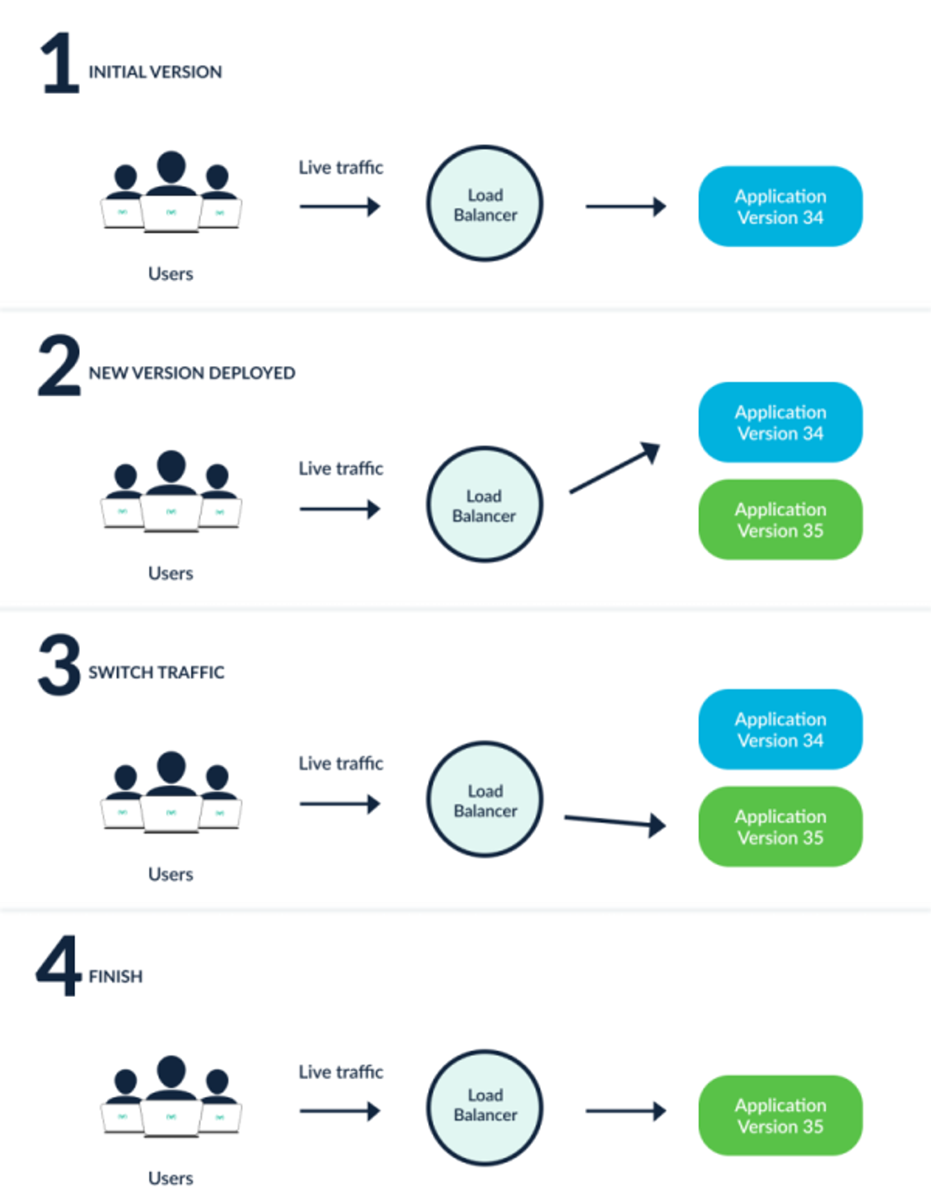 Blue/Green 배포는 현재 버전(블루)과 새 버전(그린)을 동시에 실행하고, 트래픽을 새 버전으로 점차적으로 이동시켜 배포하는 전략입니다.