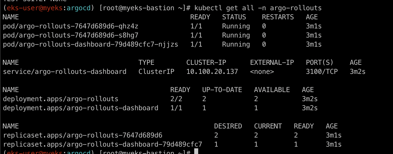 kubectl 명령어로 argo-rollouts namespace에 설치된 리소스를 확인해보겠습니다.