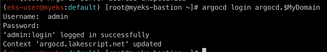 배포한 ArgoCD 페이지에 접속하기 위해 비밀번호를 알아야 하는데, 위의 명령어를 통해 확인이 가능합니다.