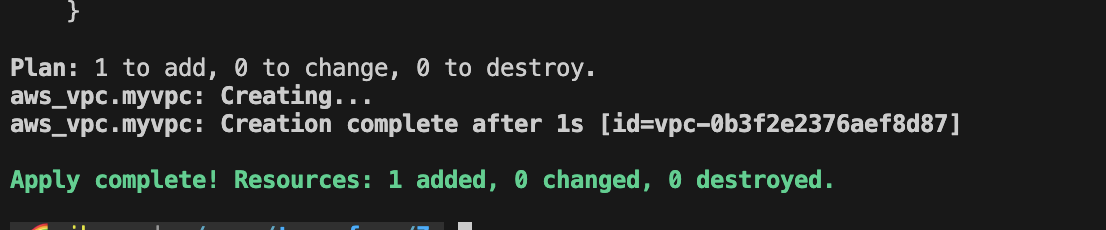 그럼 위의 사진처럼 aws_vpc.myvpc가 정상적으로 생성된 것을 확인하실 수 있습니다.
