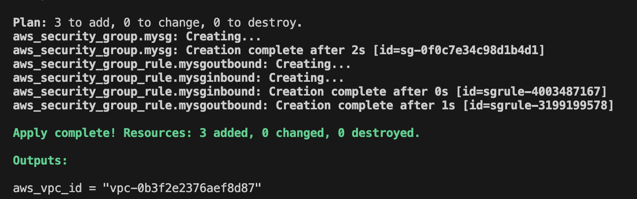그럼 위의 사진처럼 aws_subnet.mysubnet2와 aws_subnet.mysubnet1이 생성되었고, Outputs이 출력되는 것을 확인하실 수 있습니다.