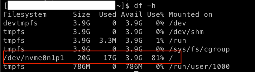 /dev/nvme0n1p1 xfs 8.0G 1.6G 6.5G 20% /