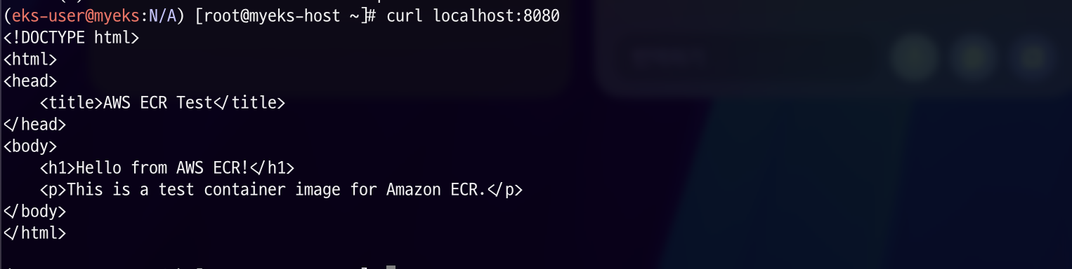 ECR에서 Image를 잘 받아와서 conainer를 생성한 것을 확인하실 수 있습니다!
