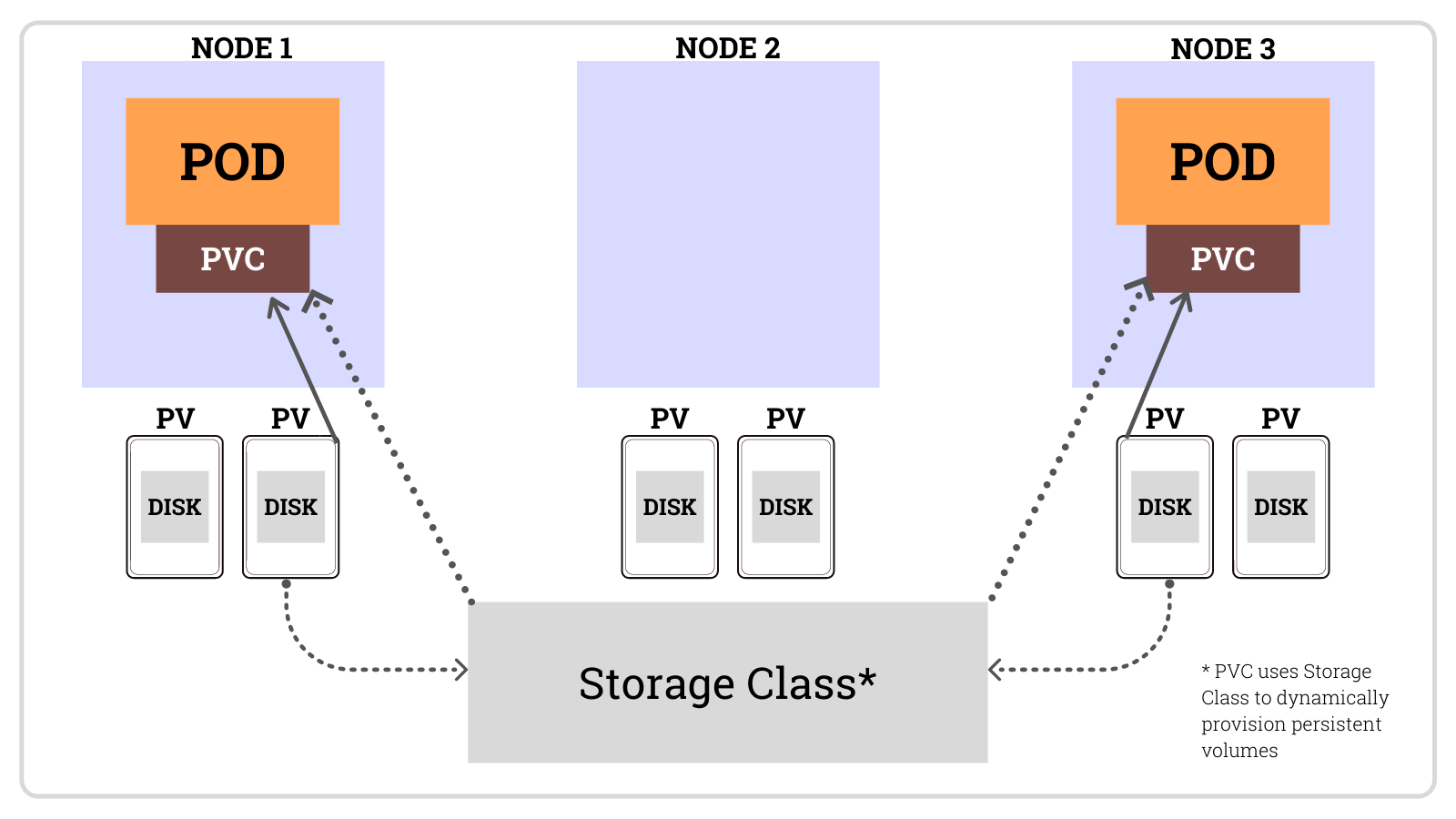 PVC(Persistent Volume Claim)는 PV를 추상화하여 개발자가 손쉽게 PV를 사용 가능하게 만들어주는 기능입니다. 개발자는 사용에 필요한 Volume의 크기, Volume의 정책을 선택하고 요청만 하면 됩니다. 운영자는 개발자의 요청에 맞게 PV 를 생성하게 되고, PVC는 해당 PV를 가져가게 됩니다.