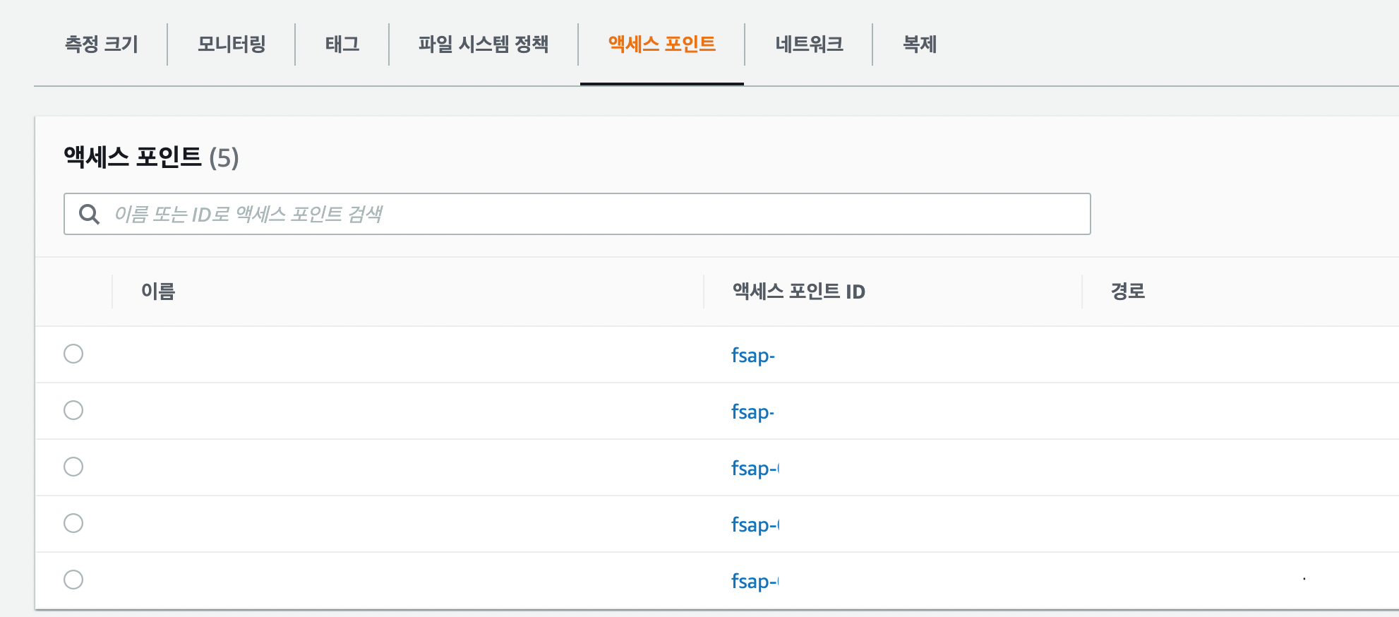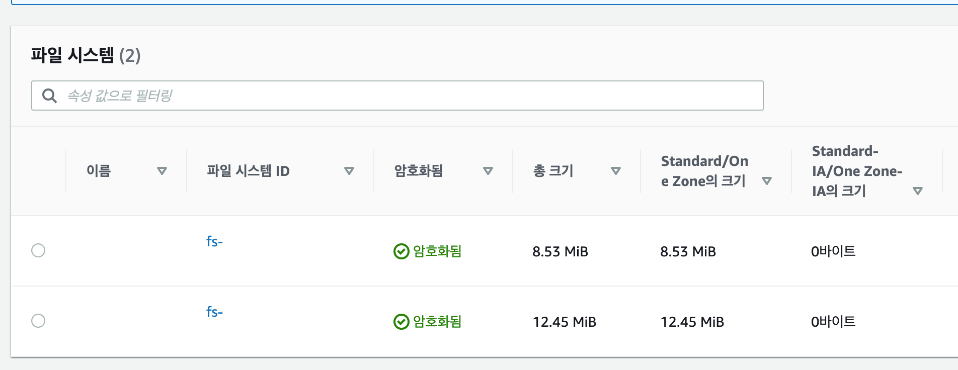 AWS console에 접속하여 AWS EFS 서비스에서 파일 시스템을 하나 생성합니다.