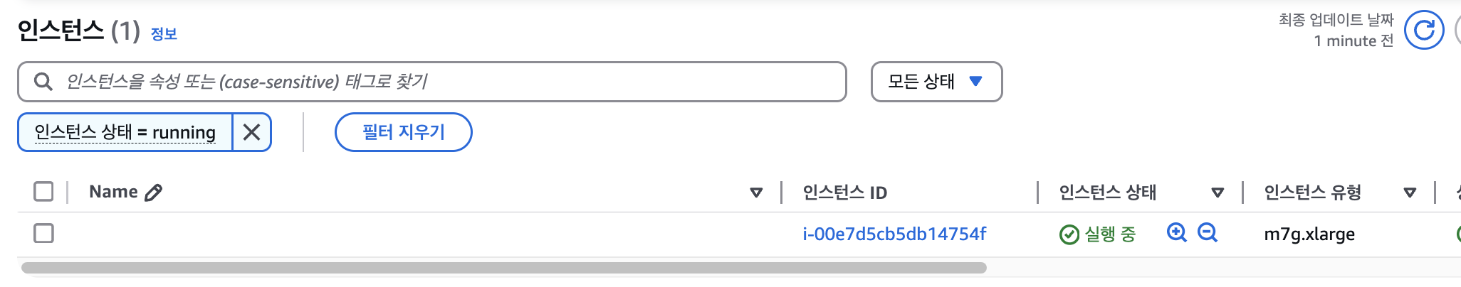 type이 m7g.xlarge, spot으로 자동으로 생성된을 확인할 수 있습니다.