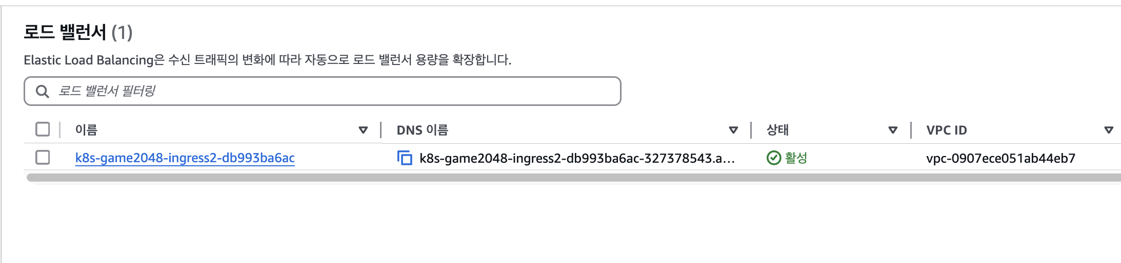 위에서 생성한 Pod와 마찬가지로 예제로 수록되어있는 2048-ingress.yaml 파일을 배포합니다.