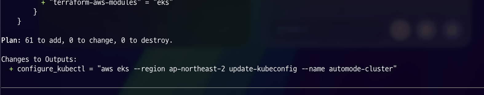 eks.tf파일에서 cluster_compute_config 부분이 중요한데, 해당 부분이 auto mode를 설정하는 부분입니다.