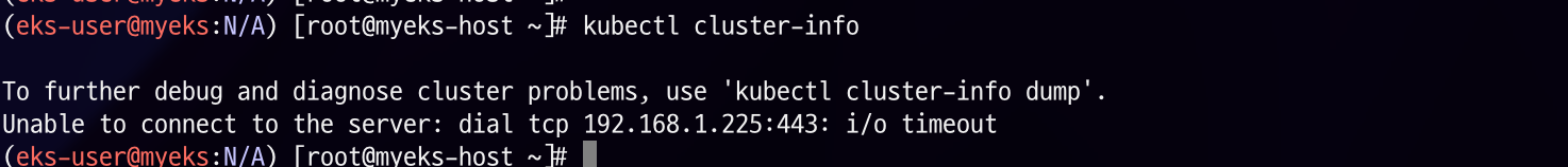 아까와 다르게 bastion host에서 접근하면 cluster 내부에 접근할 수 없는 것을 확인하실 수 있습니다.