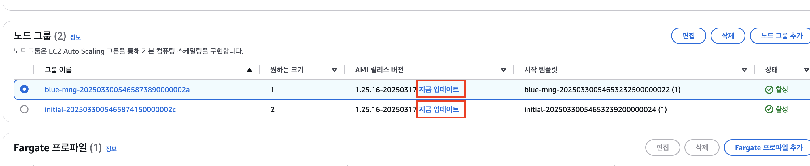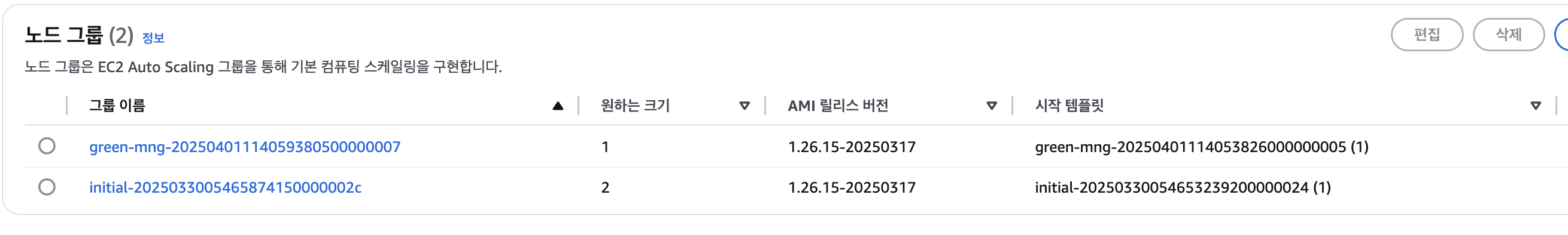 위의 코드대로 blue managed node group과 같은 green managed node group을 추가합니다.