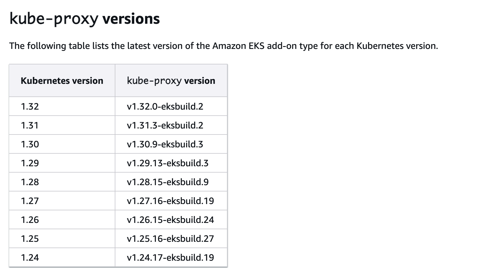 EKS 1.32, EKS 1.31, EKS 1.30등 EKS 문서를 참고하여 업그레이드 체크리스트를 만듭니다. 이때, 각 버전의 주요 변경 사항과 고려 사항을 확인해야 합니다.