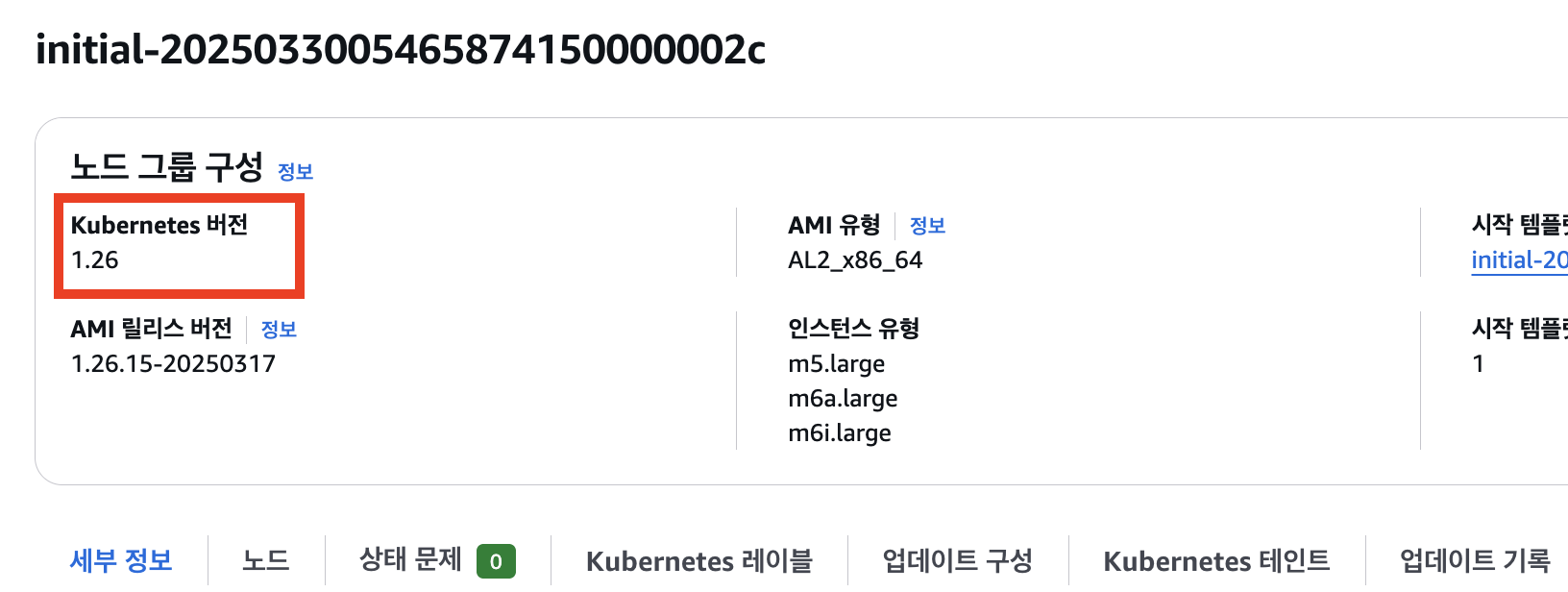 이제 기존 노드 그룹의 버전을 업그레이드해보기 위해 위와 같이 version을 수정합니다.